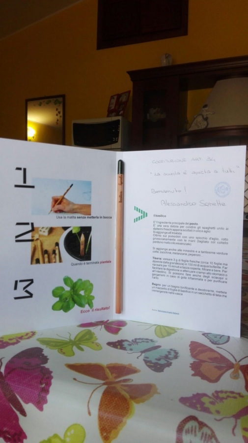 E' stato un onore e un piacere dare a tutti il benvenuto nel mondo della scuola con un piccolo omaggio: una matita contenente un semino, che alla fine del suo utilizzo, potrà essere messo in un vasetto per dare vita ad una piantina.
