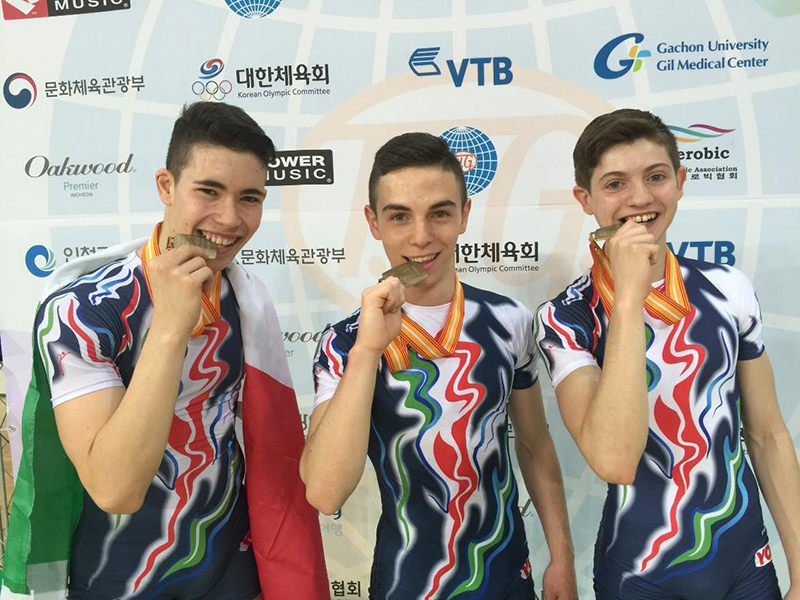 I veri campioni non si danno per vinti ed imparano dai propri errori cercando sempre la perfezione e, quando per Marcello Patteri è la volta di risalire in pedana con i compagni d'avventura Davide Nacci e Marco Vargiu, il Trio delle Meraviglie non delude e conquista il bronzo ai World Age Group Competition di Aerobica "Potenti, audaci, precisi. Tre furie a caccia del punteggio giusto, quello che ti fa salire sul podio con una medaglia al collo e gridare come un matto dalla felicità . - così annuncia il comunicato della Federazione Ginnastica Italiana - Grazie a un decimo e mezzo di vantaggio sullo score delle semifinali, il terzetto campione europeo in carica, allenato da Vito Iaia e Gigliola Carosi, non si lascia sfuggire l’occasione di confermare l’indiscusso valore della scuola italiana anche a livello mondiale".