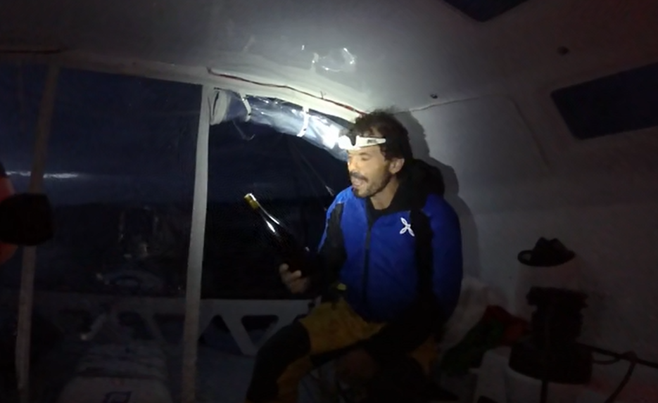 "Ho detto a Italia che bisognava farlo, che stringesse i denti. Sono andato dabbasso, ho incominciato a spostare i pesi, ho scaricato il ballast (serbatoio di zavorra liquida, ndr), sono tornato in coperta, sul ponte sopravvento a slegare i due sacchi di vele che erano lì per fare raddrizzamento. Sotto cascate di onde che frangevano in coperta per la velocità sono tornato in pozzetto, ho preso la volante e il cuore tra le mani e in velocità giù da un'onda ho strambato. Indenne, grazie al cielo, ma la volante sottovento è rimasta sopravvento alla randa, cosa che ho sistemato stamane all'alba.