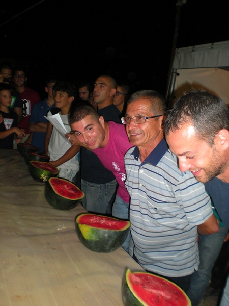 Le ultime competizioni della giornata si sono svolte in serata al campo di Mes’Austu. la “Gara del maialetto è stata vinta da Danilo Branca che conclude la cattura in poco più di 10 secondi e la “Gara dell’anguria” con Andrea Branca che trionfa nella categoria 4-10 anni e Cristian Chiotti nella categoria 10-14 anni.