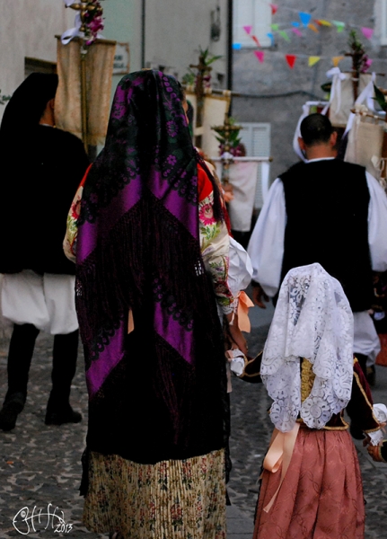 Una processione solenne e composta ha accompagnato “l’Assunta” per le vie del paese. Tanti i ragazzi e i bambini in costume; donne eleganti e uomini orgogliosi indossavano “pezzi” di storia e tradizione contribuendo così a colmare l’assenza di cavalli e cavalieri.